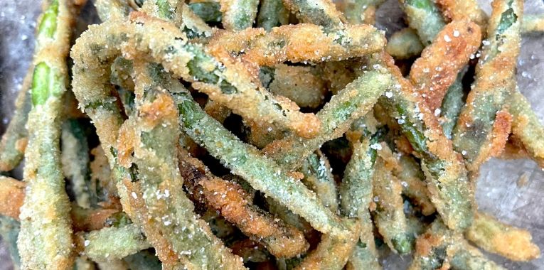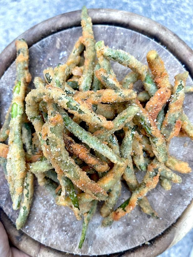 Pulite entrambi i lati dei fagiolini e lessateli in acqua bollente per 10 minuti.