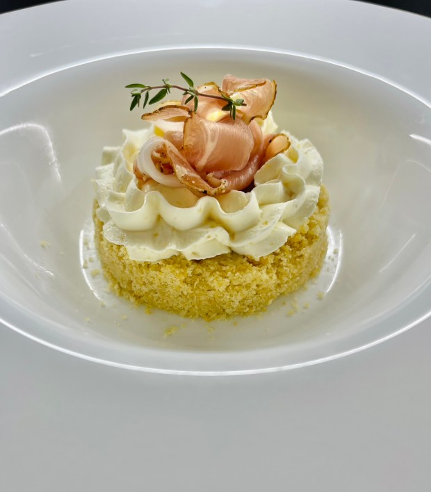 Amalgamate la philadelpia senza aggiungere nulla e aiutandovi con un sac a poche disponetela sulla base, aggiungete una fettina di speck e buon appetito!
