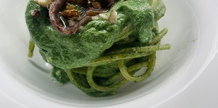 Spaghetti cremosi con Alici, Ricotta e Spinaci