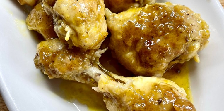 Condite le cosce di pollo con tutti gli ingredienti scritti, girate e cuocete in padella 10/15 minuti per lato con un coperchio. Prima di servirle mettete due cucchiai di miele, girate le cosce e servire calde.