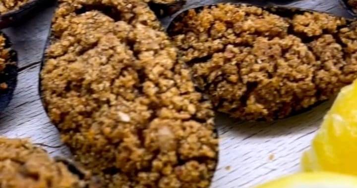 Togliete il guscio vuoto delle cozze e nell’altro aiurandovi con un cucchiaino riempitelo con il composto preparato.