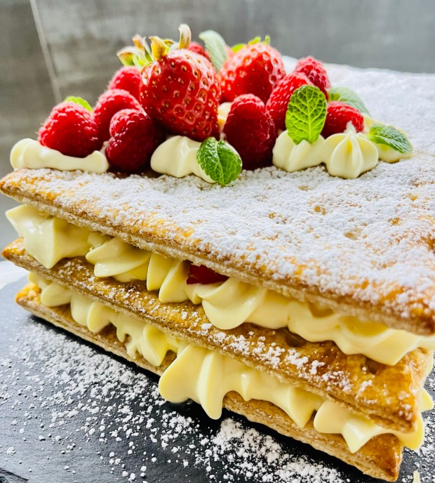 – aggiungete a piacere altra crema sulla parte superiore, con lamponi, foglioline di menta e cacao