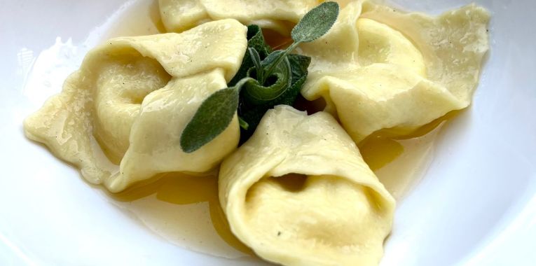 Cuocete in acqua bollente salata fino a quando non torneranno in superficie. In una pentola unite burro e salvia e saltate i tortelloni.