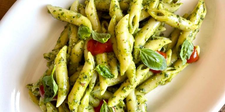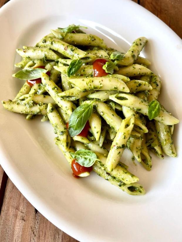 1- Con un mortaio o più velocemente con un mixer tritate il basilico, insieme alle mandorle e formaggio, aggiungendo olio evo 2- tagliare in due i pachini e metteteli in una padella antiaderente; cospargete di zucchero semolato e cucinate con un coperchio per 10 minuti 2- frullateli e con un passino estrarrete solo il liquido 3- Cucinate la pasta, ripassatela per qualche minuto in padella con un mestolo di acqua di cottura 4- Impiattate e aggiungete la salsa di pachino caramellato sulla pasta 👌