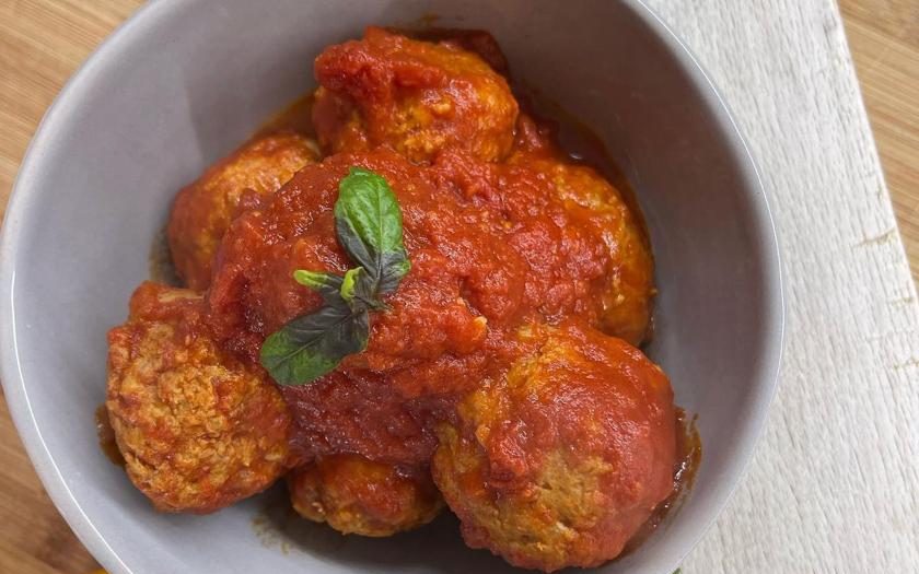 Prendete una casseruola alta e scaldare con un filo d’olio ed uno spicchio d’aglio. Quando inizia a rosolare inserite tutte le polpette, sfumate con un quarto di vino bianco e dopo circa 5 minuti inerite la polpa ed il basilico.