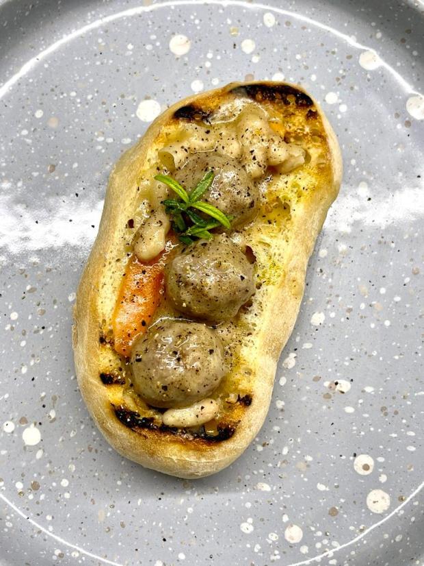 Aprite la ciabatta, privatela della mollica dentro, scaldatelo e mettete dentro le polpette con i fagioli.